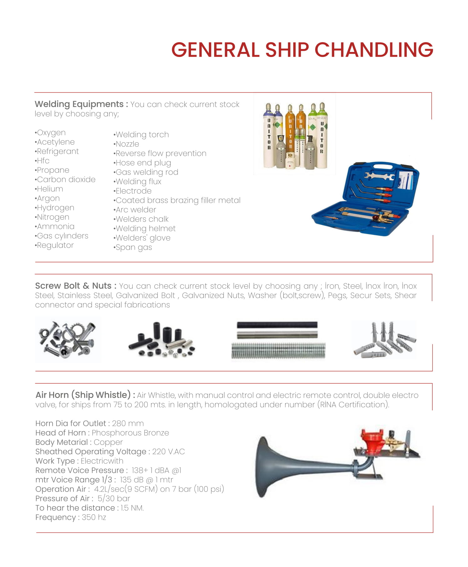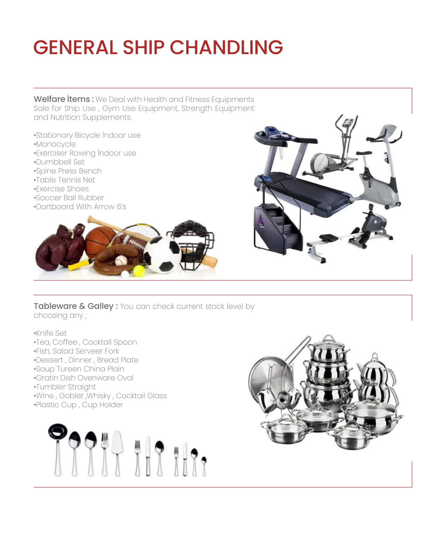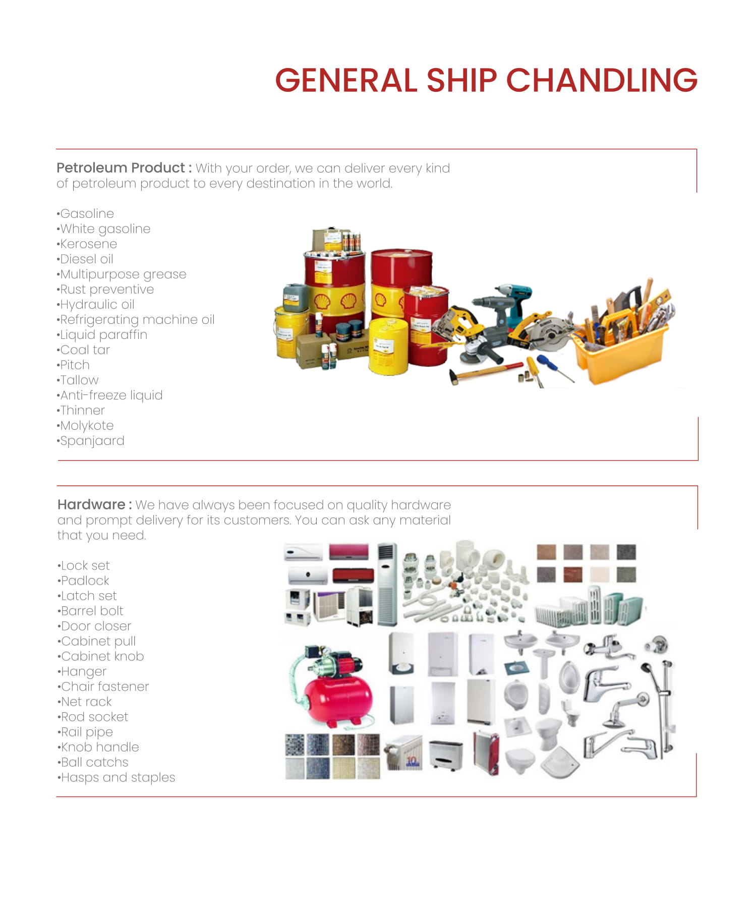 materials, medical, bathroom equipment and hardware. All types of nautical