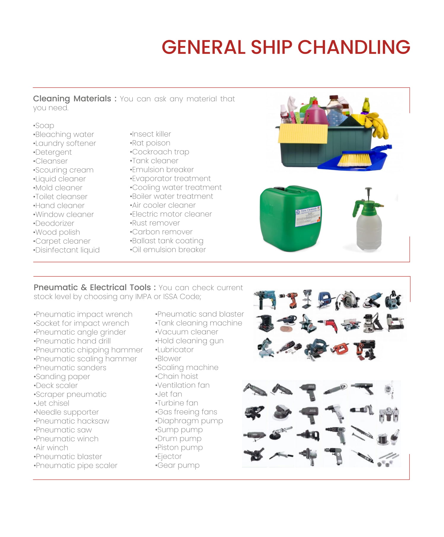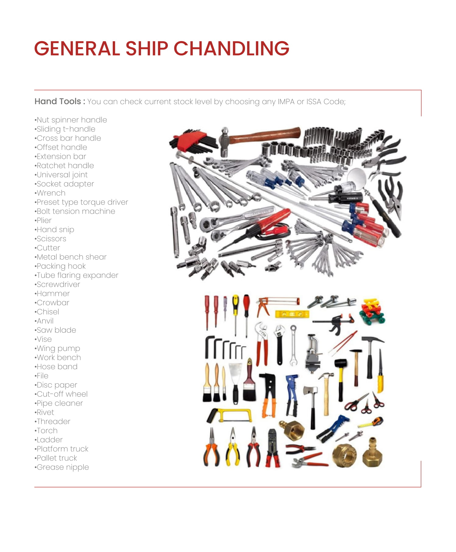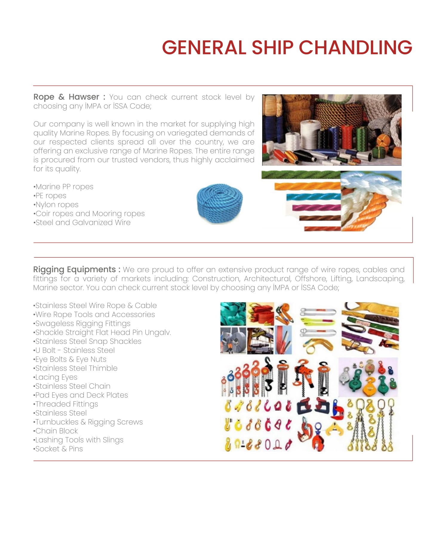 materials, medical, bathroom equipment and hardware. All types of nautical